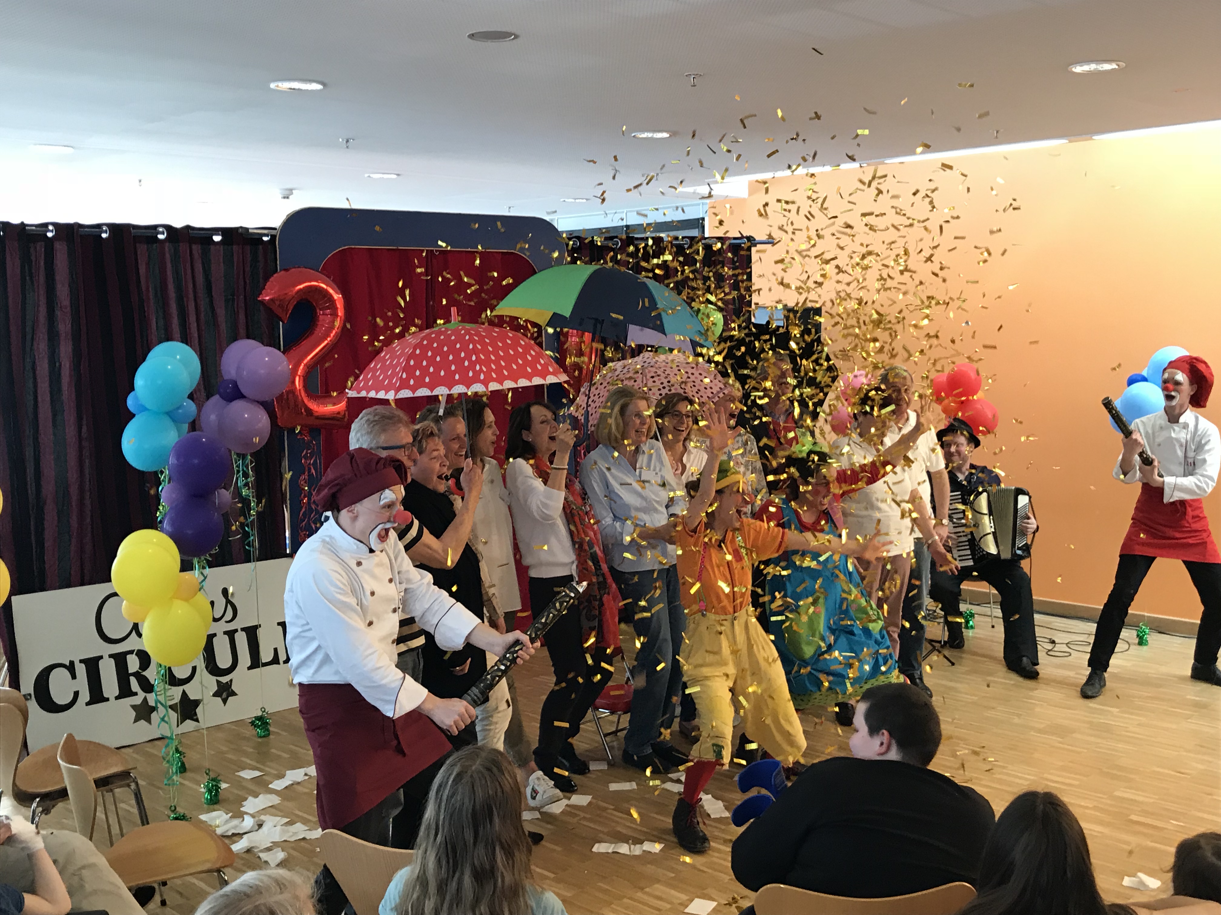 Anlässlich ihres 20-jährigen Jubiläums veranstaltete die Olgäle-Stiftung für das kranke Kind e.V. auch dieses Mal ein buntes Kinderfest in der Cafeteria des Olgahospitals. Unter dem Motto „Konfetti, Clowns und Frühlingszauber“ bezauberten die Schauspielerinnen Amelie Sturm und Natascha Ivanovic, verkleidet als Olga und Peppi, gesunde und kranke Kinder sowie deren Eltern und Großeltern. Die beiden Clowns versprühten jede Menge gute Laune und eine extra Portion Glitzer, der zur Begeisterung der Kinder in Massen vom Himmel regnete. Unterstützt wurden sie neben einem virtuosen Akkordeonspieler und einem fetzigen Schlagzeuger von den Kindern und Jugendlichen des Circus Circuli – ein Kinder- und Jugendzirkus der Stuttgarter Jugendhaus Gesellschaft – mit Darbietungen aus deren aktuellem Programm. Popcorn, Glitzer Tattoos und Luftballons aus Profihand durften natürlich auch nicht fehlen und trugen so zu einem rundum bezaubernden Kinderfest bei!