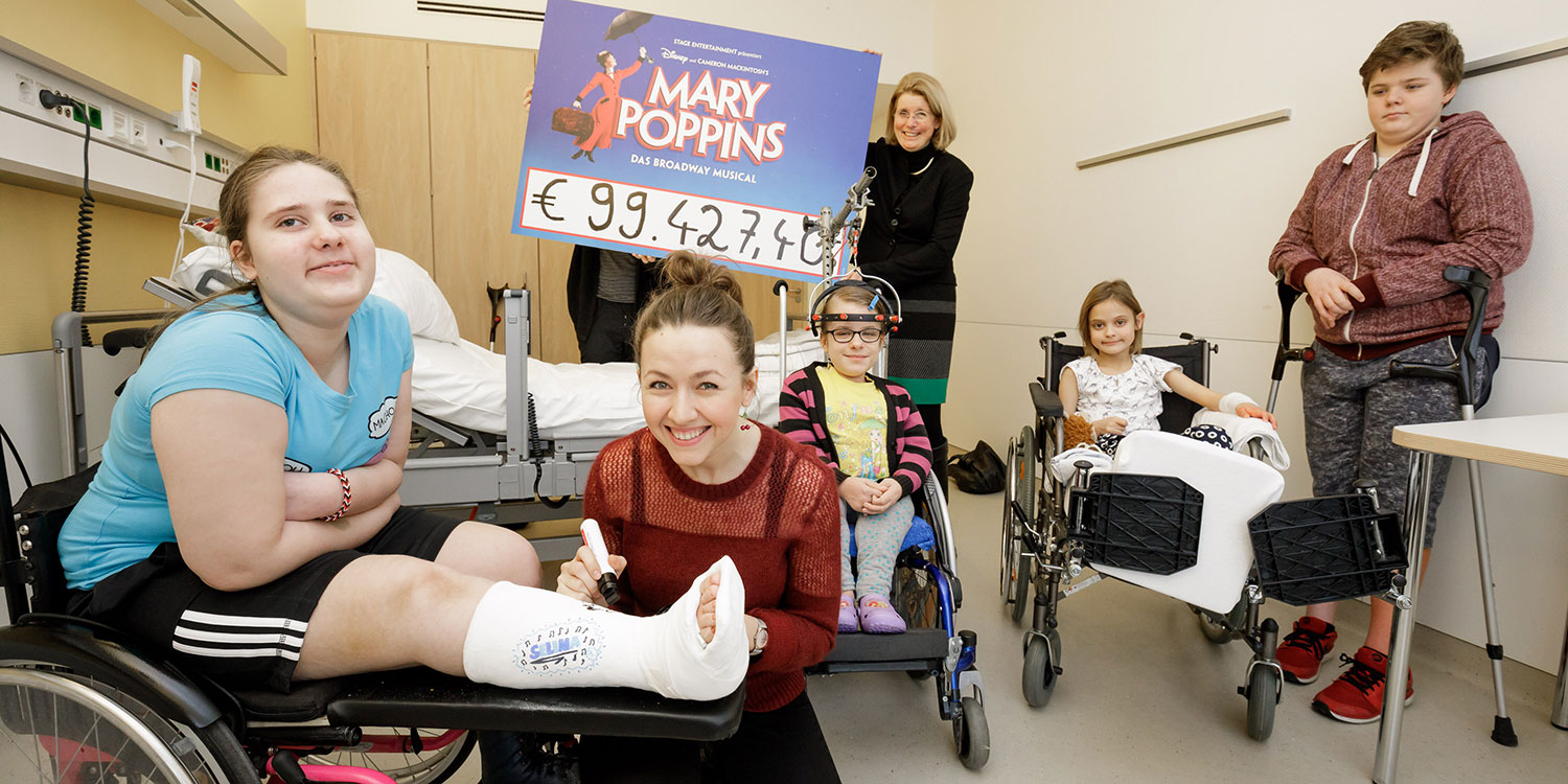 Elisabeth Hübert, MARY POPPINS Hauptdarstellerin, legt Wert auf Hilfe, die ankommt: „Im Theatersaal kann Mary Poppins der Familie Banks und den Zuschauern ein klein wenig Lebenshilfe auf den Weg geben, das sind bereits schöne Momente. Umso mehr freut es mich, dass wir durch die Spendenaktion nun auch an dieser Stelle ganz konkret und vor Ort helfen können. Toll, wie das Stuttgarter Musicalpublikum uns hier unterstützt hat! Der Besuch bei den jungen Patienten im Olgahospital und die interessante Führung haben uns gezeigt, wie wichtig die Spenden für Therapien, engagierte Fachkräfte und medizinische Geräte sind.“