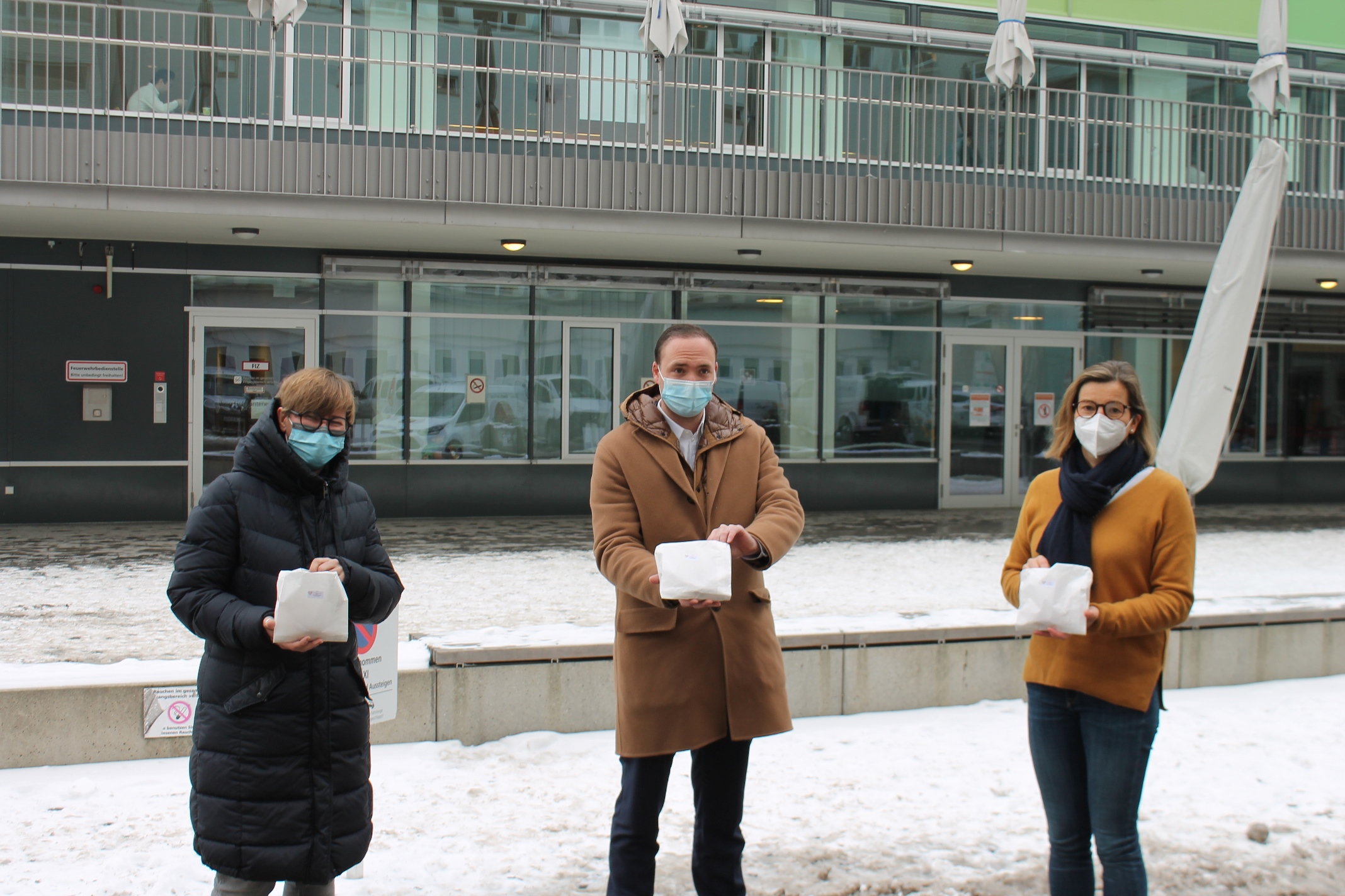 Was wäre die Faschingszeit ohne Berliner? Die Panetteria Haag aus Schwaikheim wollte den kleinen Patienten zu Fasching eine Freude bereiten. So übergab uns pünktlich zum Rosenmontag Geschäftsführer Alessandro Haag 180 frische Berliner. Zusammen mit Silke Bortenlänger (Stellvertretende Pflegerische Zentrumsleitung/Frauenklinik) nahm unser geschäftsführender Vorstand Felicitas von Hülsen die Berliner vor dem Olgäle entgegen und verteilte diese anschließend auf den Stationen.